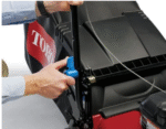 - Need to store the mower upright in tight spaces? Just flip the blue levers to raise the handle.